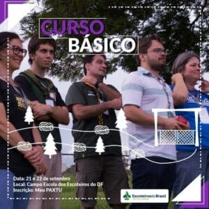 A Diretoria de Gestão de Adultos do Distrito Federal (DGA), com o intuito de qualificar o adulto para uma atuação plena como Voluntário no movimento escoteiro, realizará o CURSO BÁSICO – LINHA DIRIGENTE e o CURSO BÁSICO – LINHA ESCOTISTA, conforme detalhes abaixo relacionados: